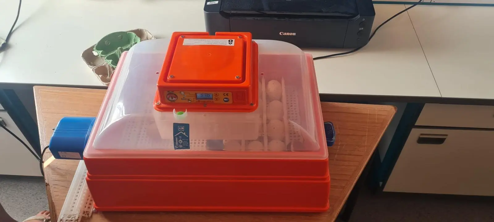 - Die Schule erhält für ca. 21 Tage einen Brutkasten mit befruchteten Hühnereiern.